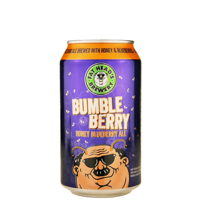 Fat Head's Bumble Berry (5.3% ABV) is brewed with freshly harvested spring honey and infused with freshly picked blueberries. It's a light, satisfying ale with a lively blueberry aroma, crackery malt flavors, a hint of sweetness and a refreshing blueberry finish. 12-oz cans.