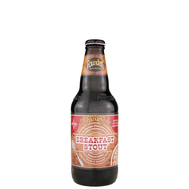 Founders Breakfast Stout (ABV 8.3%) is a coffee lover’s dream -- Breakfast-inspired flavors of roasted coffee, chocolate, and caramelized sugar, with low bitterness and just the right amount of sweetness. Brewed with an abundance of flaked oats, specialty chocolates and two types of coffee, this stout has an intense fresh-roasted java nose topped with a frothy, cinnamon-colored head that goes forever. You’ll be coming back for seconds! 12 oz. bottle.